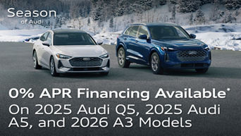 *Offered on select models. With approved credit on select in-stock models. Subject to credit approval through Wells Fargo. $0 down payment/due at signing. Ex: 2025 Audi Q5; MSRP: $52,200. Plus tax, title, license, registration & dealer doc fees. Residency restrictions may apply. Cannot be combined with any other offers. See dealer for complete details. Offer ends 1/2/2026.